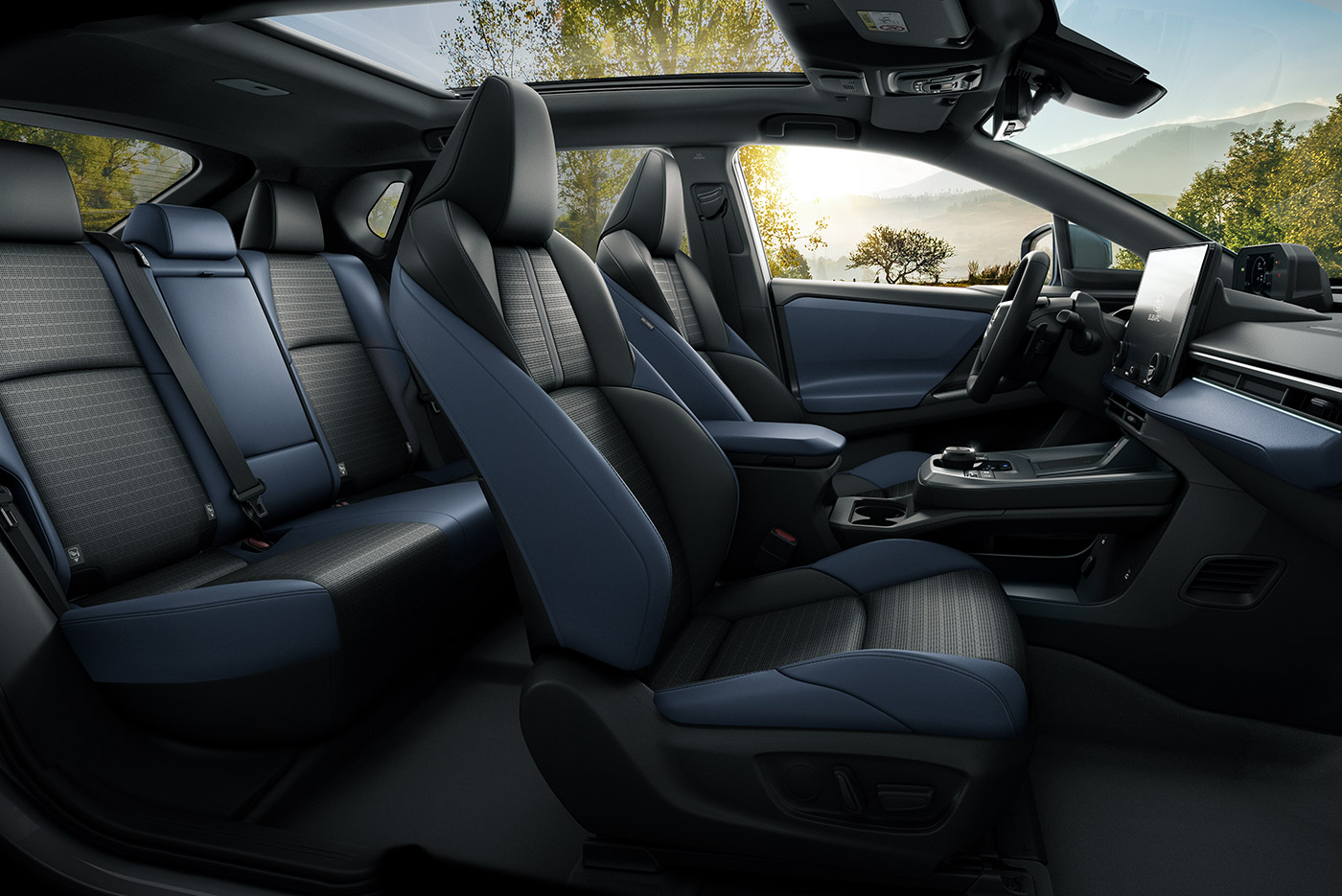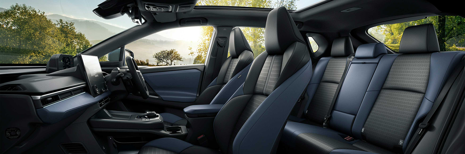 Solterra XT 寬闊的車内空間,為每一位乘客帶來輕鬆放鬆的乘坐體驗,尤其後座乘客也能自在伸展、舒適享受旅程。再加上純電車款天生的寧靜特性,全車都能自在交談,分享沿途的每一刻。