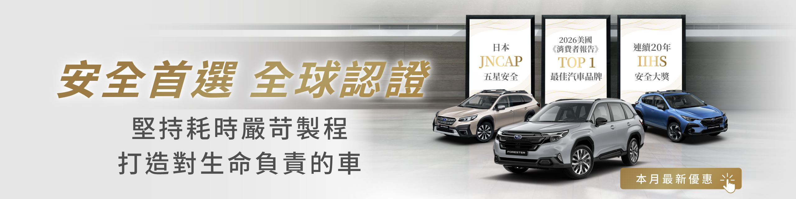 Subaru以其獨有的設計理念,賦予您無與倫比的信心,並提供安心的駕馭體驗,守護著您的人生中的每趟征途