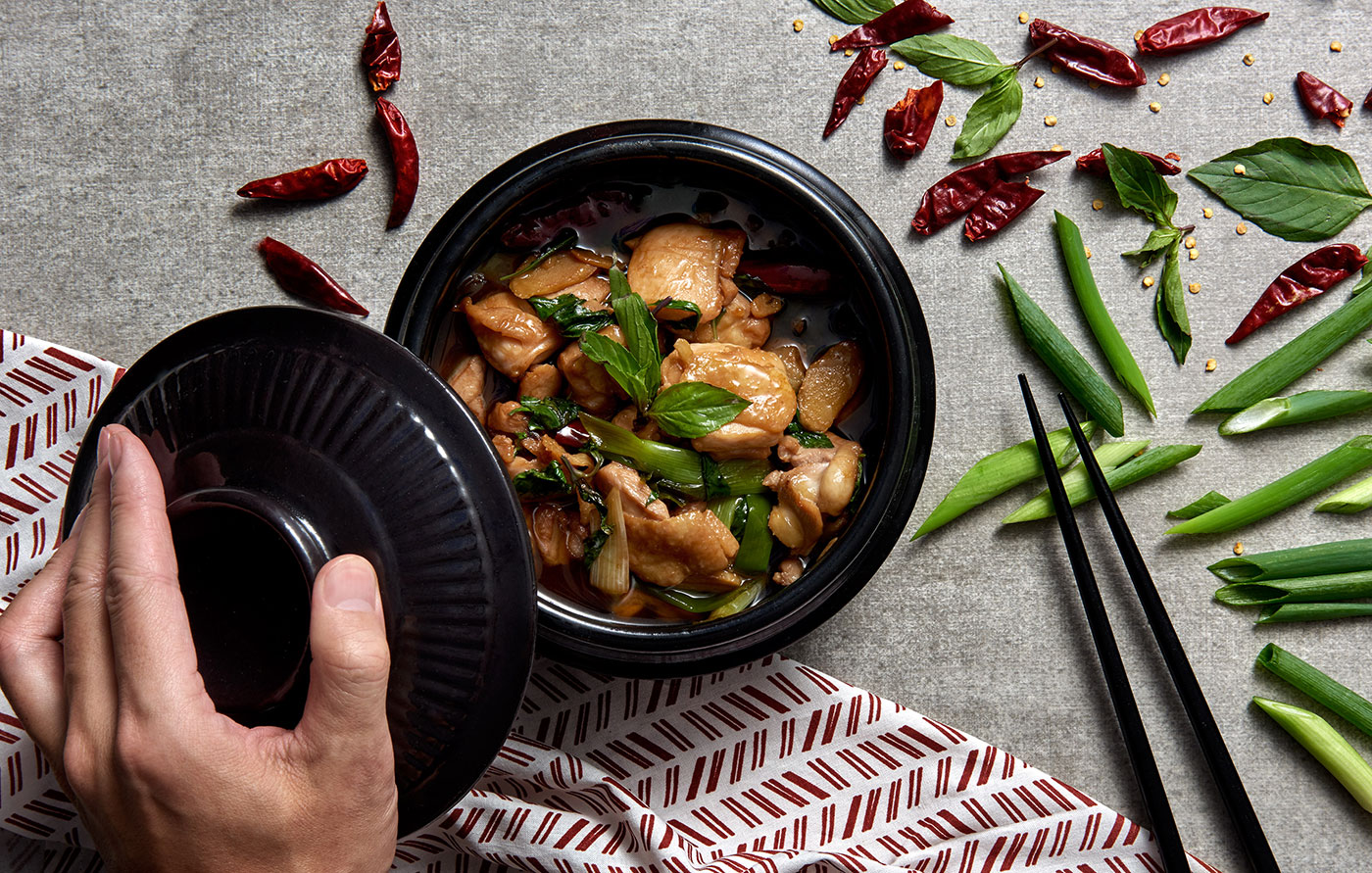 - Personally, I love to serve 3 Cup Chicken in a clay pot. The clay pot keeps it warm and allows the sauce to thicken as you enjoy it.