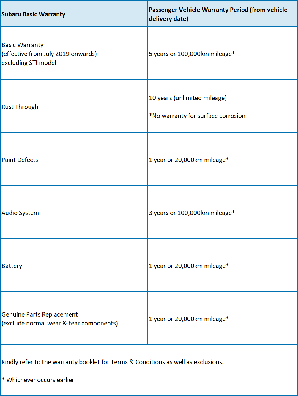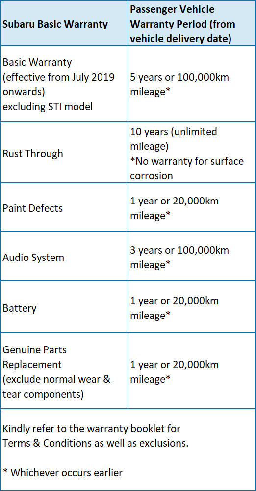 Your Subaru is covered by the following for an added peace of mind.